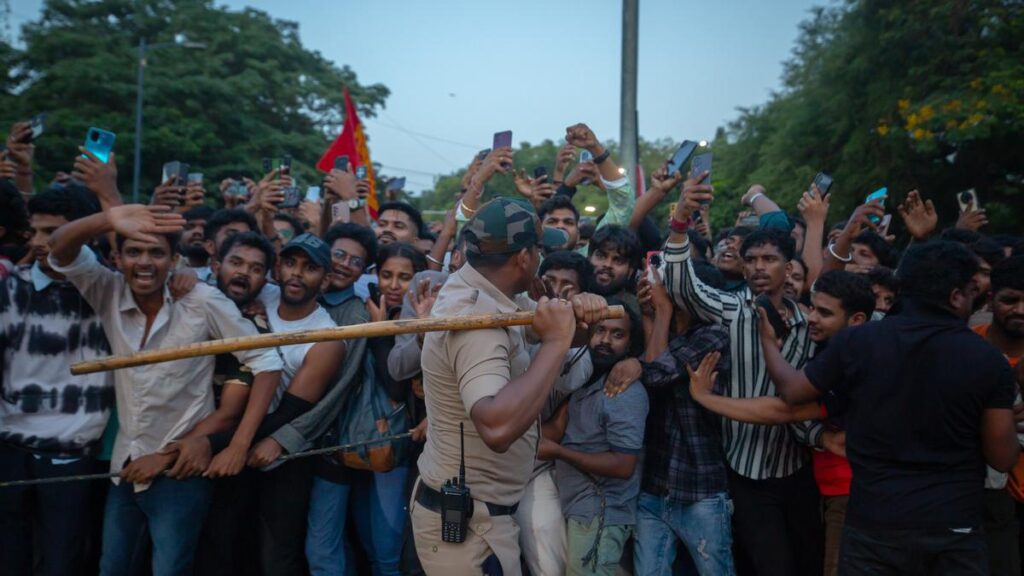 File picture of police officers trying to control fans of Royal Challengers Bengaluru (RCB) to get them to disperse from outside the M. Chinnaswamy Stadium on June 4, 2025 in Bengaluru, India.