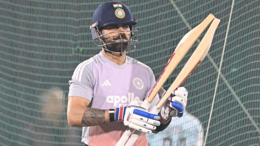 Virat Kohli during a practice session in Raipur on Tuesday.