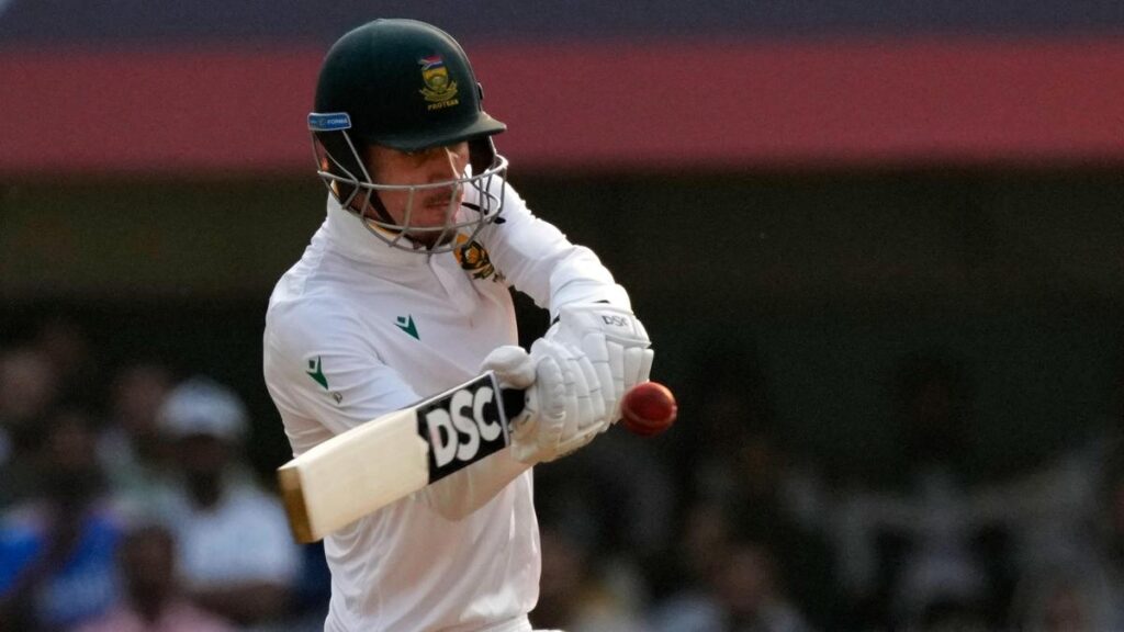 South Africa’s Marco Jansen plays a shot on the second day of the second cricket test match between India and South Africa in Guwahati, on November 22, 2025.