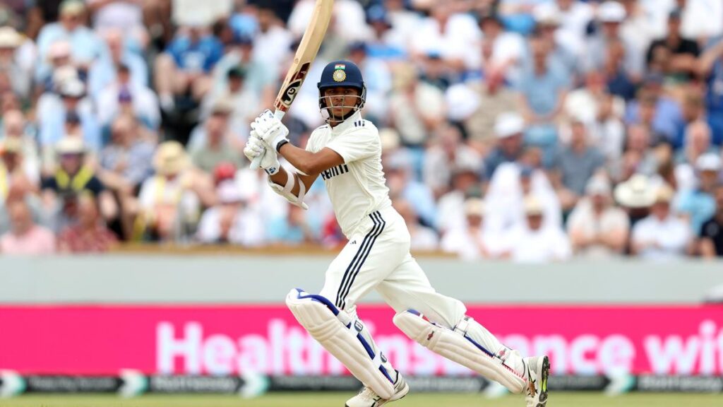 Post fifty, Gill slowed down – the century came 84 balls later via a pleasing drive off Josh Tongue – while Jaiswal took centre-stage. The southpaw was bothered by a sore right forearm, but that didn’t stop him from slashing Tongue for a six, and moving from 87 to 99 with two cuts and a drive off Carse. A tapped single brought the crowd on to its feet in collective appreciation.