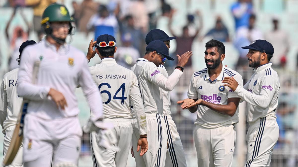 India’s Jasprit Bumrah celebrates the dismissal of South Africa’s Ryan Rickelt on the first day of the first cricket Test match at Eden Gardens in Kolkata on November 14, 2025. | Photo Credit: K.R. Deepak Jasprit Bumrah showcased his mastery with two unplayable deliveries to dismiss both openers while Kuldeep Yadav added the prized wicket … Read more