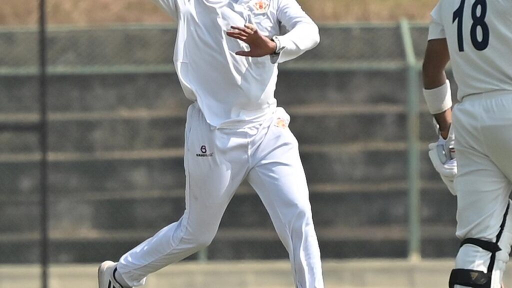 From overs 53.5 to 63.2, the innings unraveled like a seam splitting under quiet pressure. Four wickets fell in that narrow passage — Shreyas had Taranpreet Singh (seven) caught at silly mid-off and Jagjit Singh Sandhu leg-before (zero), while left-arm spinner Shikhar Shetty bowled both Gaurav Puri (32) and Nishunk Birla (nine) through the gate.