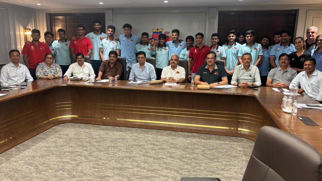 The MCA Emerging Team members and office-bearers at a press briefing in Mumbai on June 16, 2025.