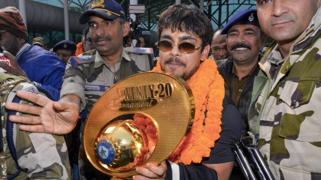 Jharkhand cricket team’s captain Ishan Kishan arrives at Birsa Munda Airport, a day after the team won the Syed Mushtaq Ali Trophy 2025, in Ranchi, Friday, Dec. 19, 2025.