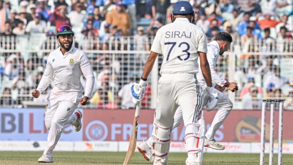 Temba Bavuma celebrates his team’s victory in the Kolkata Test.